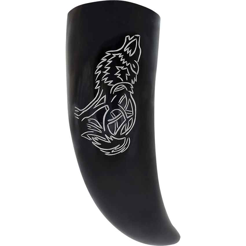 Wolves and wolf-like creatures prowl about in myths and legends. Honor the legacy of that animal by drinking from the Howling Wolf Drinking Horn. Made of natural horn, this Viking style drinking horn features an engraved wolf. The stylized wolf sits on its rear legs, appearing to howl into the sky. Safe for drinking from and eye-catching to behold, the Howling Wolf Drinking Horn makes a fantastic addition to both feastware and decor. Also, it is great for a variety of medieval and Renaissance events such as faires.