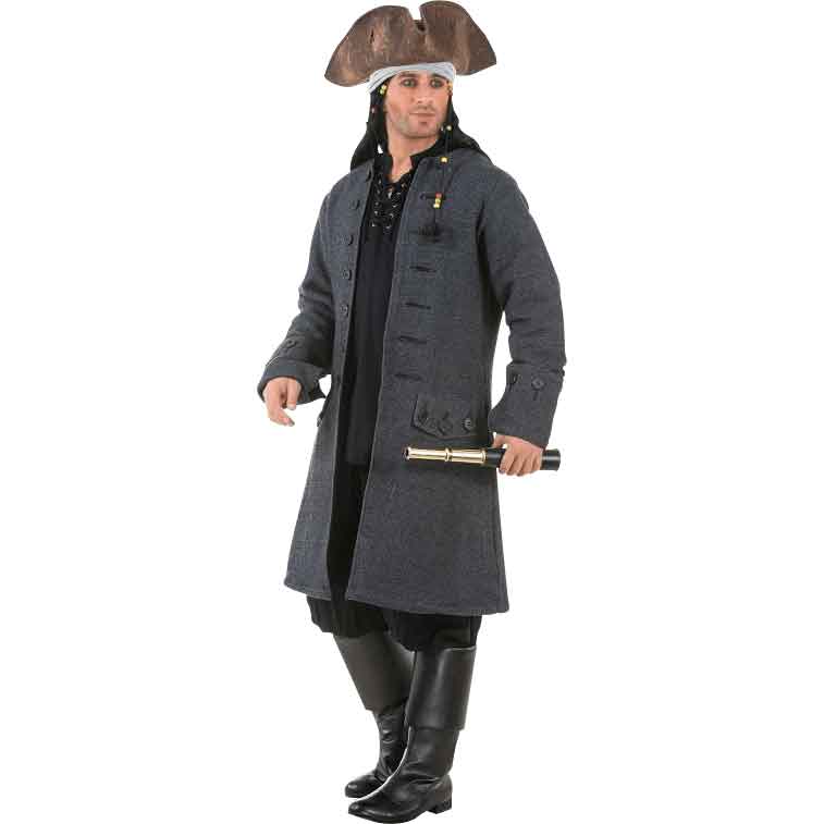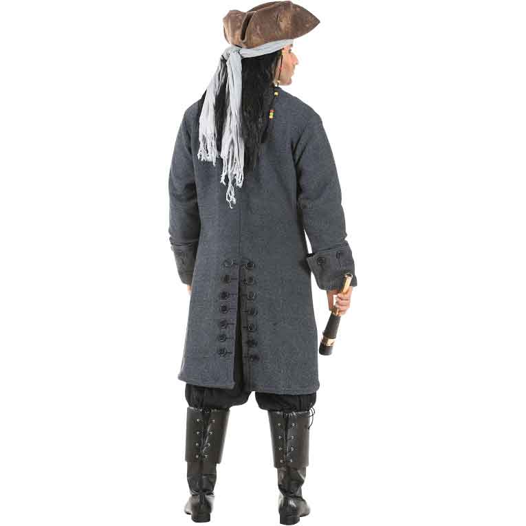 Named for the popular captain from the Pirates of the Caribbean films, the Jack Sparrow Pirate Coat possesses an authentic look, making it much more than just a costume. Finish your pirate ensemble in style with this period coat. Crafted from rustic rayon fabric, this buccaneer coat features aged wooden buttons that run along the front, sleeve cuffs, and back slit. Functional pockets and a full lining complete the privateer coat design with a balance of practicality, comfort, and style. You can dress as though you have seen hundreds of battles at sea whenever you wear this high quality swashbuckler coat.