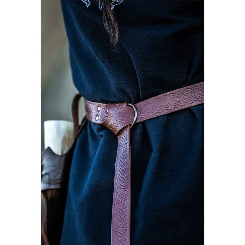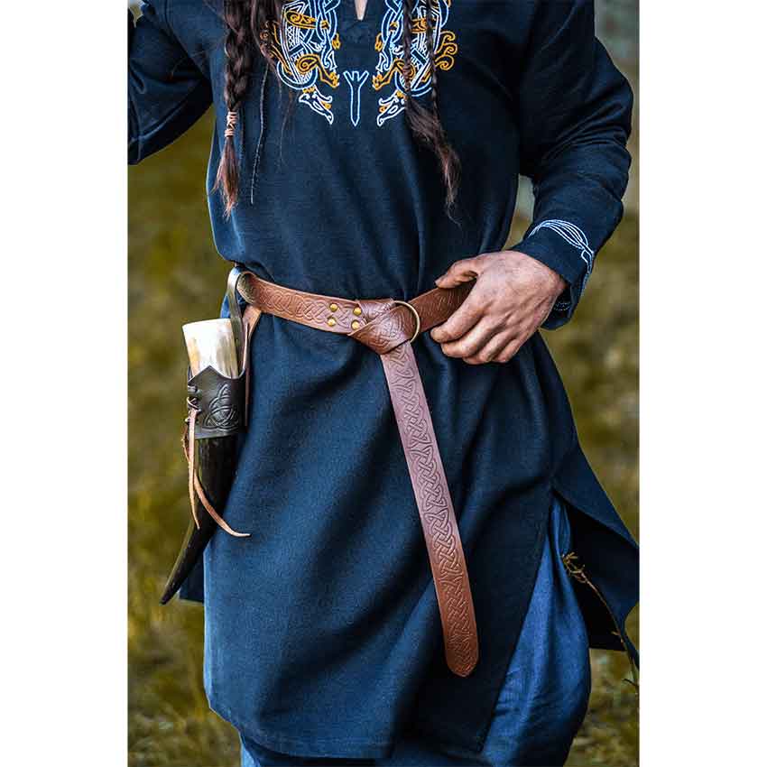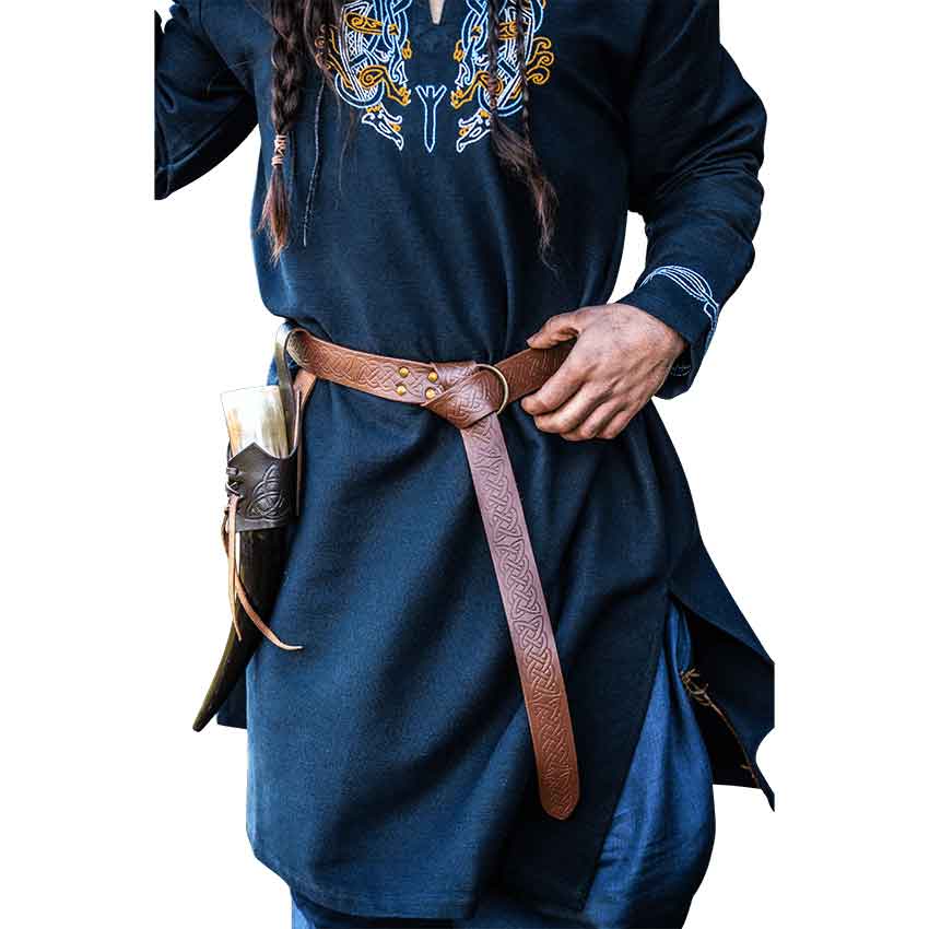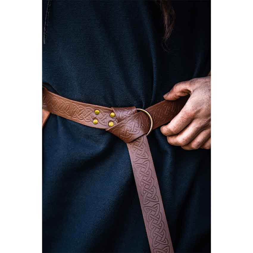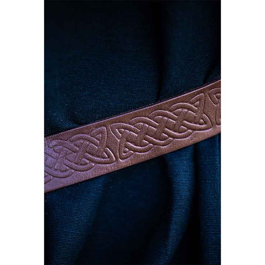 All adventurers know that a good belt not only keeps your outfit together, it also provides a space to hang your accessories and weapon frogs. The Celtic knotwork embossed on it adds style to most medieval, Viking, or Celtic outfits you have. Rest assured you’ll be well prepared at Renaissance fairs, LARP events, and historical reenactments wearing this medieval Celtic leather belt.