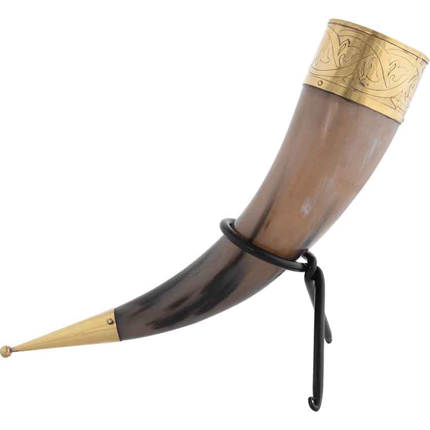 In the aftermath of your victory, you relax to the tales being spun of your greatness. You drink out of the Knotwork Rim Drinking Horn. Being made of natural horn gives the drinking horn an authentic look and feel. It also has a brass rim and end cap. An elegant knotwork design adorns the rim. This knotwork design has a floral touch. The Knotwork Rim Drinking Horn looks great as part of a historical reenactment, LARP event, or cosplay. You can also use it to decorate your home or office by using one of our drinking horn stands. It also makes a functional accessory on an adventure with a drinking horn frog.