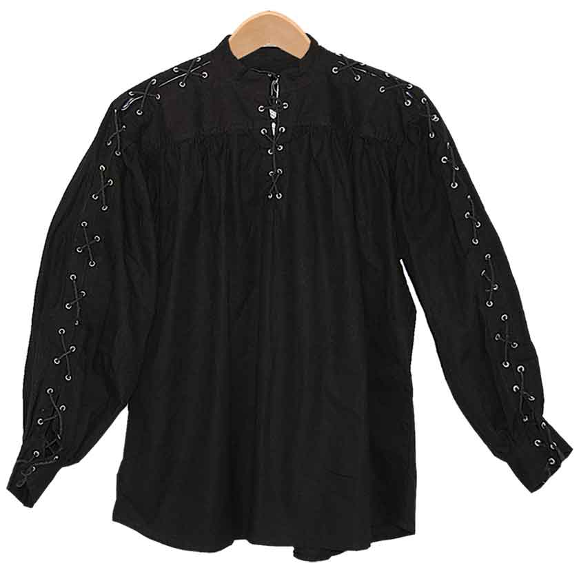 Looking to add some medieval style to your historical wardrobe? If so, you should check out the Laced Sleeved Medieval Shirt. Made from 100% cotton, this shirt comes in three color options and a range of sizes. It has long, loosely cut sleeves. Lacing runs down the sides of the sleeves from the shoulders onto the cuffs. The lacing runs through grommets. There is a matching lacing at the V-neck. This shirt is ideal for a variety of medieval characters. You can wear it to faires, reenactments, LARP events, and more.