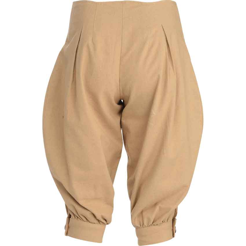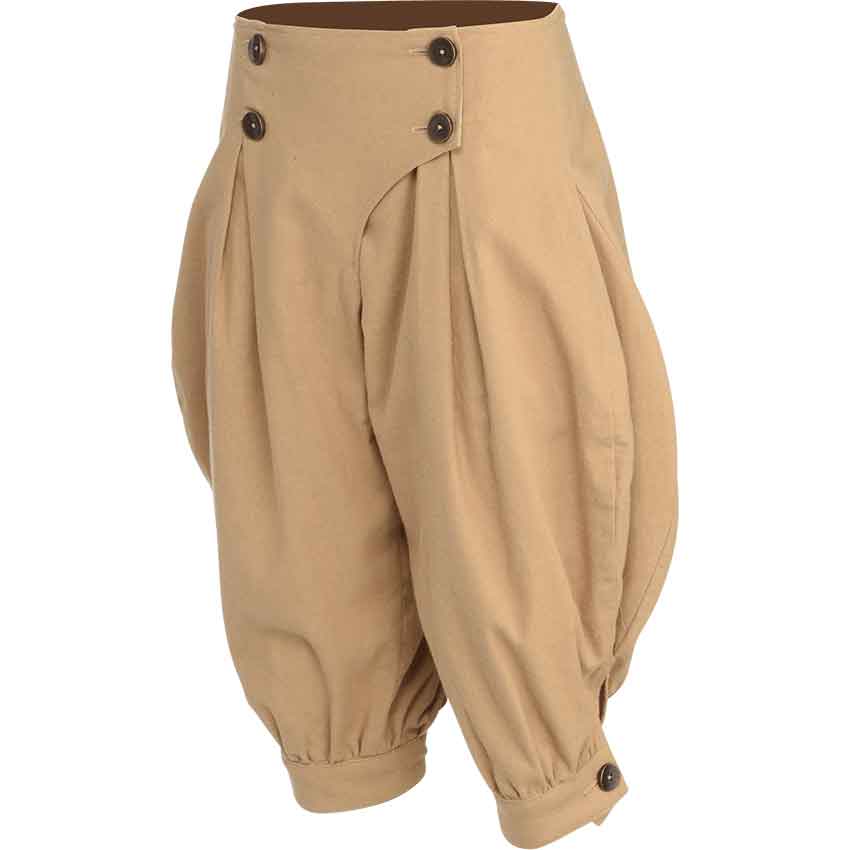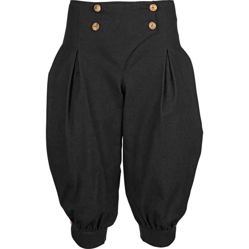 Whether you like to fly high in an airship or go on adventures, make sure that you have the proper wardrobe. Add the Ladies Steampunk Trousers to your outfit. Made from medium weight cotton, these pants come in a range of sizes and a variety of colors. This allows you to pick what fits your Neo-Victorian aesthetic. Reminiscent of jodhpurs, these pants flare out at the sides before narrowing at the cuffs. Pleating helps to give this flared look. Next, the trousers end just below the knee, depending on the size of the wearer. In addition, they button close in front with an asymmetrical design and four antique brass buttons. You can wear the Ladies Steampunk Trousers to a LARP event, cosplay convention, or as part of a theatrical production.