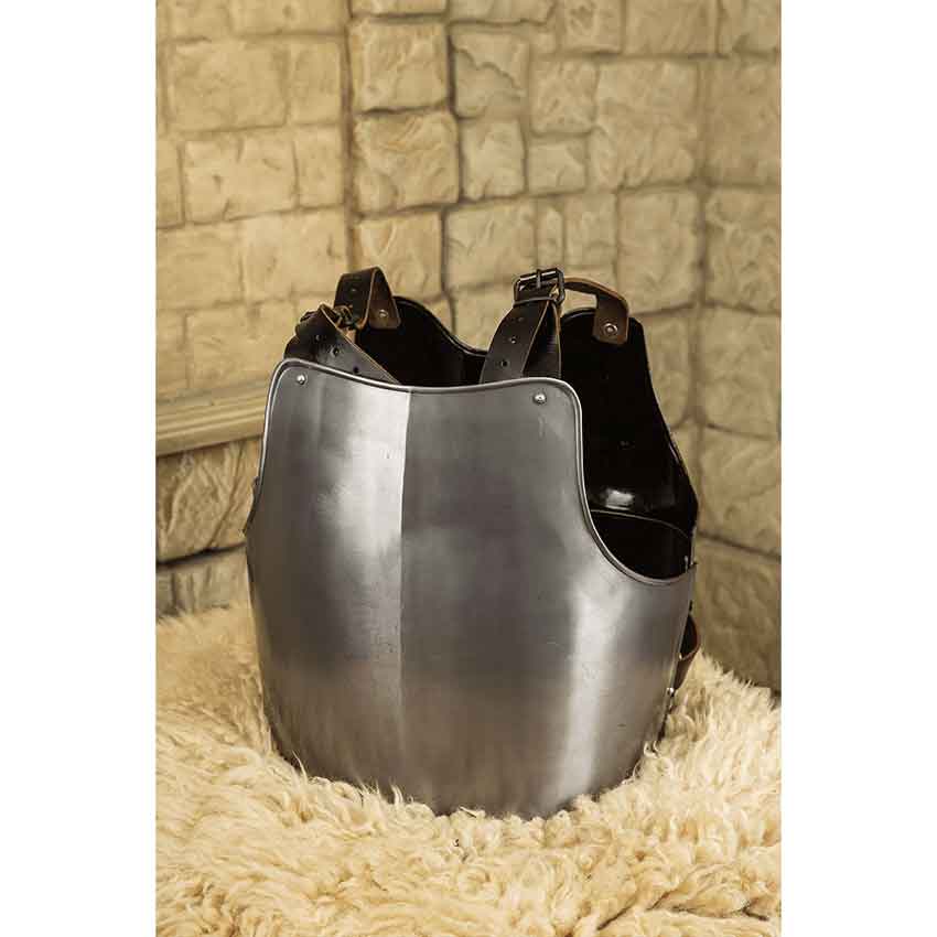 Both the front and back plates have rolled edges for safety. The Lambert Torso Armour is great for LARPing, cosplaying, and attending conventions or faires.