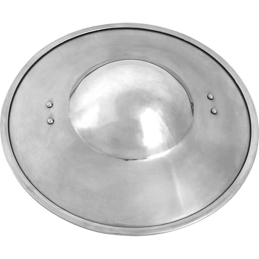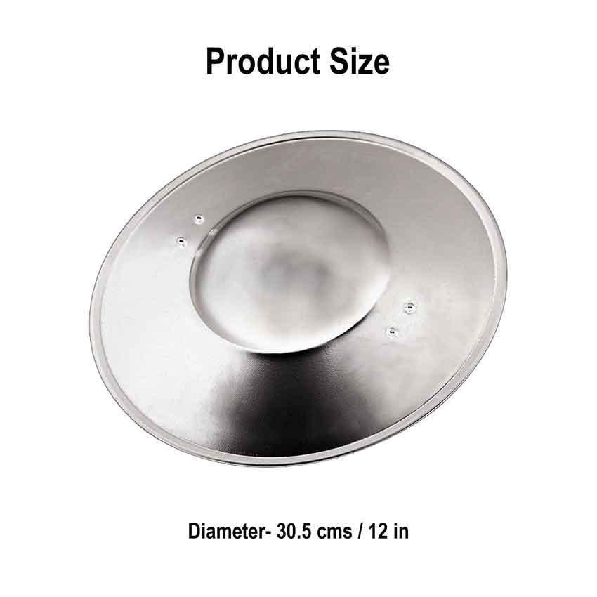 Step into the enchanting world of late medieval times with the Late Medieval Steel Buckler Shield. Crafted from high-quality 16-gauge steel, this magnificent shield showcases a polished finish, radiating an aura of elegance and strength. It epitomizes the essence of a defenders spirit.