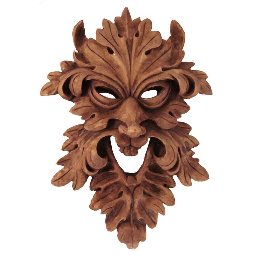 The jovial and fun-loving spirit of nature can be with you, always, so long as you have this Leafman Mask Plaque nearby. Modeled after a traditional mask design, this wall plaque creates the look of the iconic green man in beautiful wood tones. This striking plaque is crafted entirely in fine resin materials, and it features a wood grain finish that brings it closer to its natural design, while also imparting a beautiful carved look and feel. The plaque is iconic in its greenman design, depicting a face in the leaves as it looks out, mouth opened and eyes narrowed in a laughing smile. Anyone who looks at this Leafman Mask Plaque is likely to smile right back, making it a fun accent to own, especially since it will also bring a touch of fine medieval style and Celtic design to your decor.