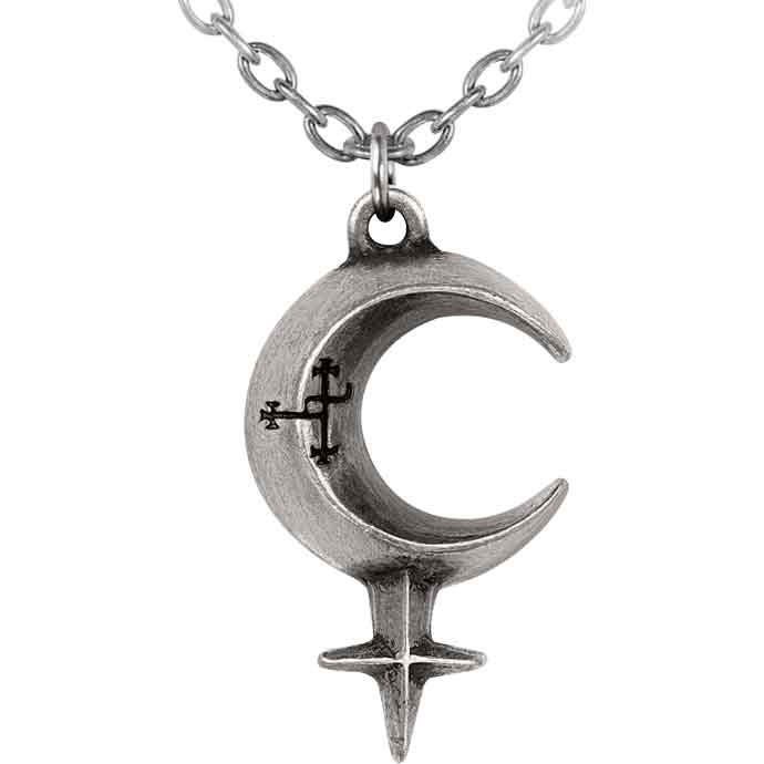 Invoke your own destiny and power with the Lilith Moon Necklace. This fine English pewter necklace features the sigil of the complex and mysterious Lilith, a mythical demon now often seen as a symbol of feminine power and rebellion in modern occult and Wiccan interpretations.