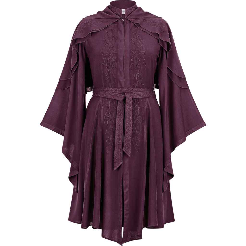 On a misty morning in an ancient forest, fasten the Lorana Elven Coat in deadly nightshade and head out for adventure. Made from plant-based rayon, this fantasy coat comes in five sizes to fit different people. This elegant elven look buttons up in front with hidden front buttons.