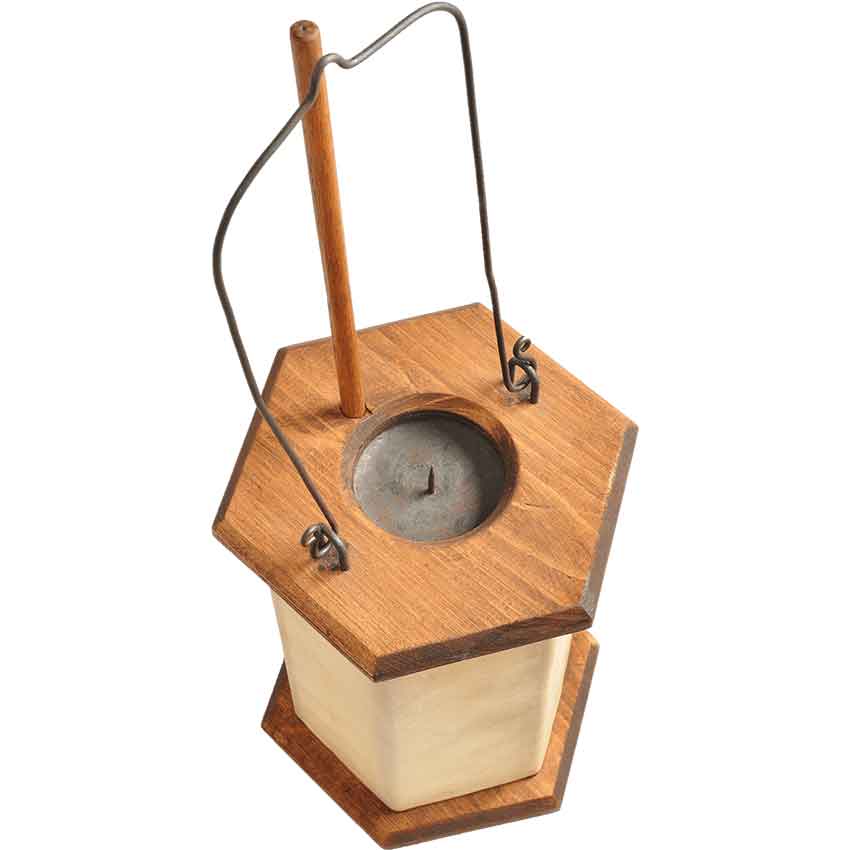 Whether you are a highwayman, adventurer, or treasure seeker, you will require a good lantern. Make sure to check out the Lucia Lantern. This hexagonal lantern features a wooden frame. Natural-colored leather wraps tautly around the posts of the frame. Nails secure the leather in place. This wrapping creates the sides of the lantern. The bottom has a flat board.