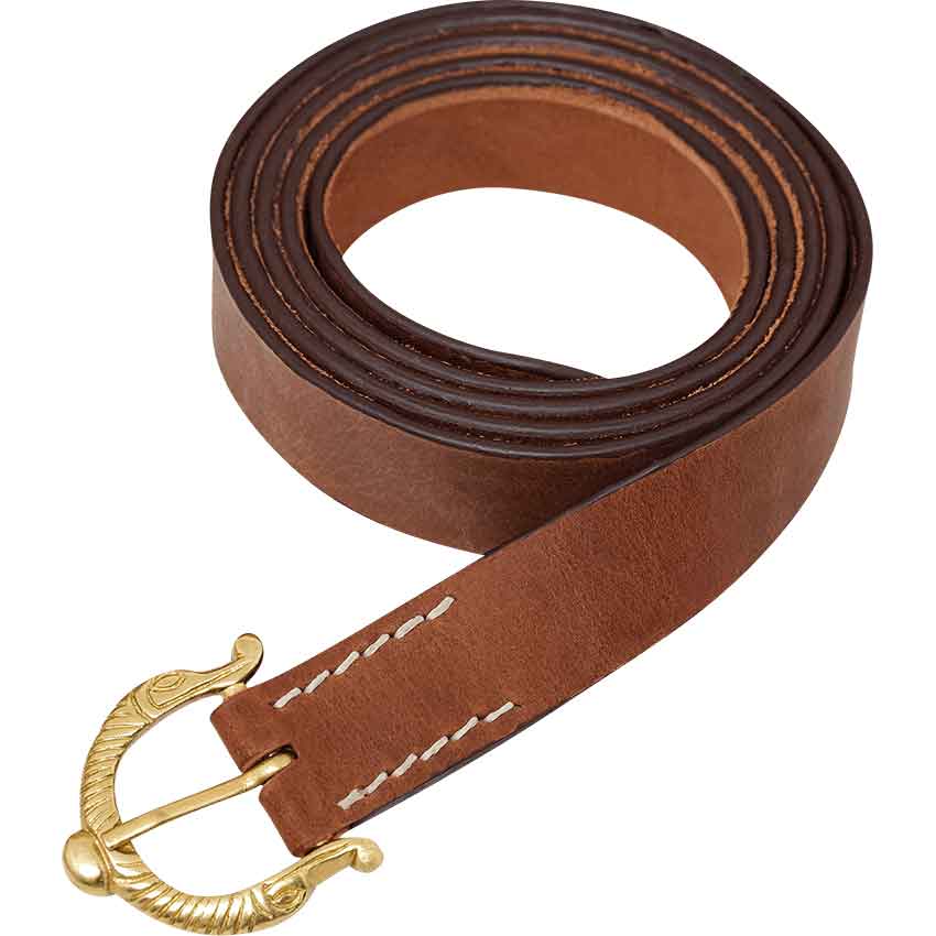 Handcrafted from thick brown leather, the medieval belt has a historical look that is versatile enough to suit all kinds of characters. It comes in three sizes. The Viking dragon emblem is carefully detailed and has a carved look. Visible white stitching on the front adds to its handcrafted appearance.