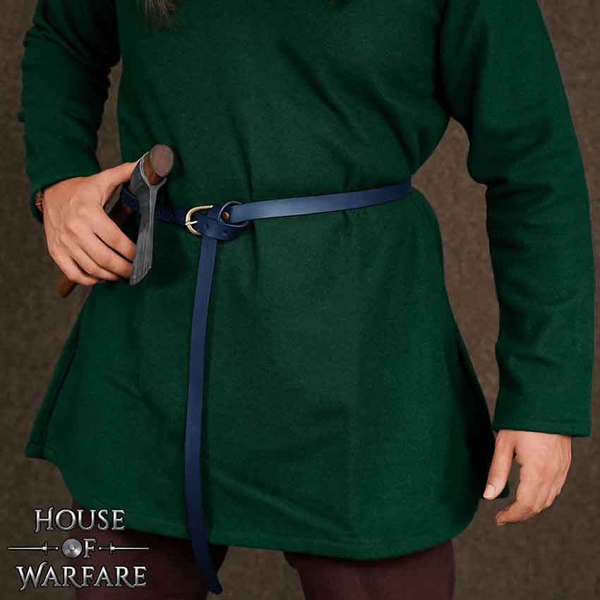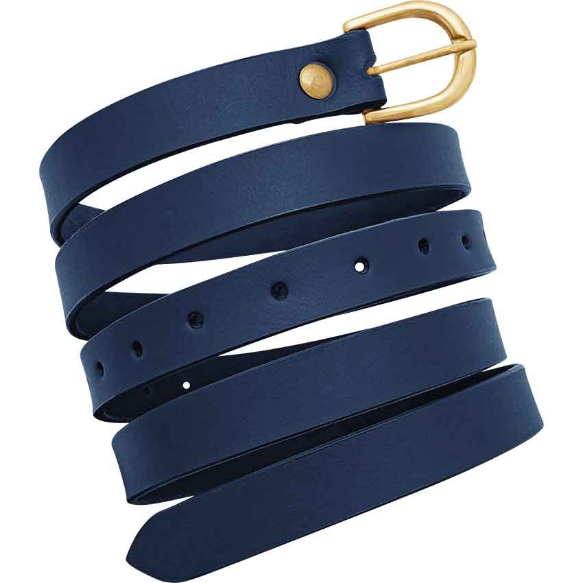 With each stride, the belt reminds you of tales of honor and valor, of battles won and peace restored. Crafted from authentic, durable materials, featuring a bold blue hue, and boasting an adjustable design with authentic medieval elements, this belt adds unparalleled value to most wardrobes.