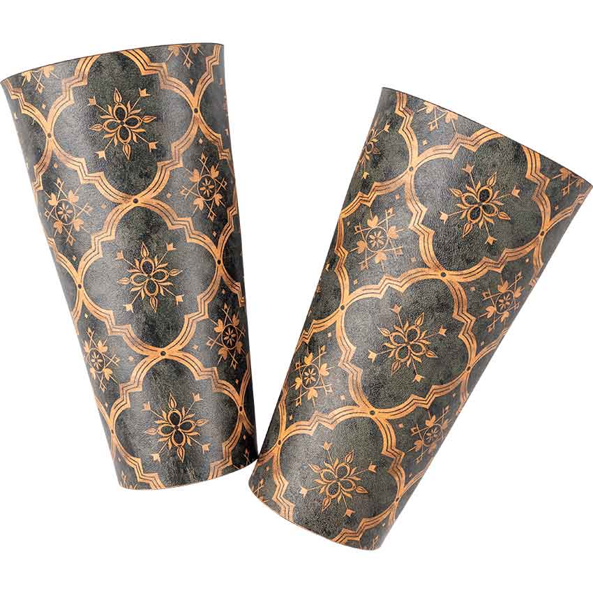 The Medieval Quatrefoil Wrist Bracers show off a stunning quatrefoil design, symbols prevalent in the castles and churches of the medieval era.