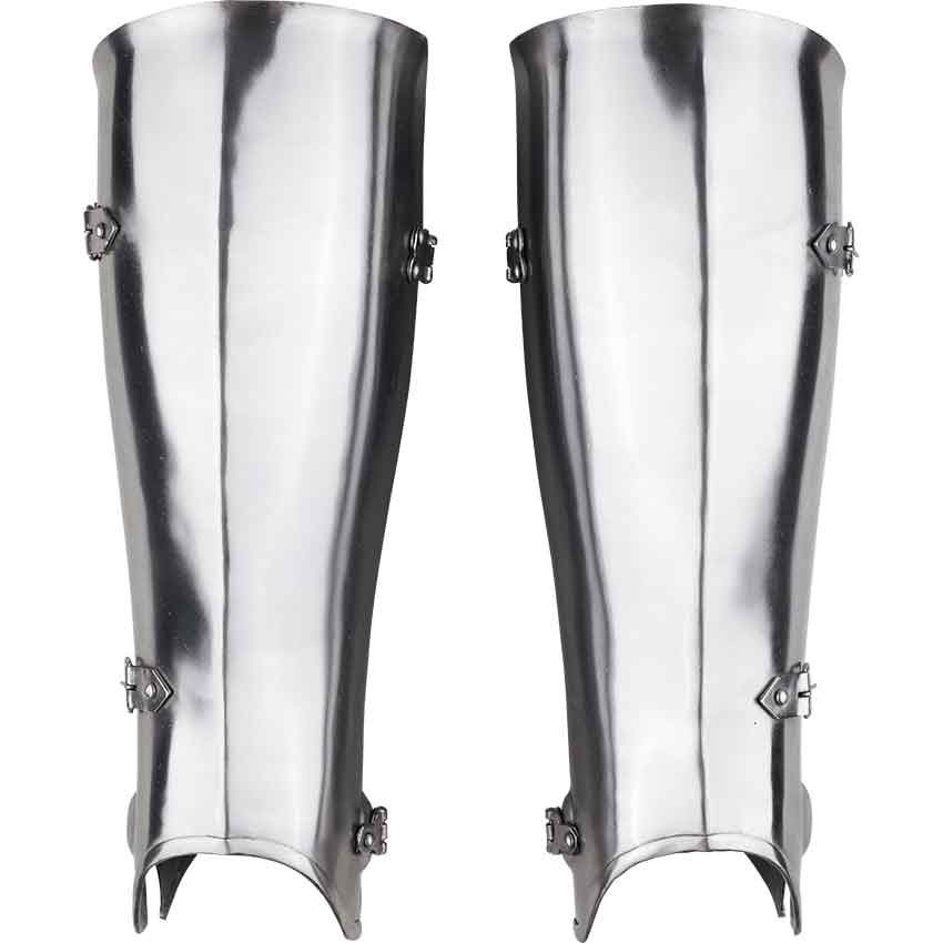 As you head into battle, you know that you do not fear attacks from the enemy. You wear the Milanese Greaves to protect your legs. Made from 16-gauge steel, these medieval greaves come as a pair. Based on a 15th century original, these greaves secure to the legs with straps.