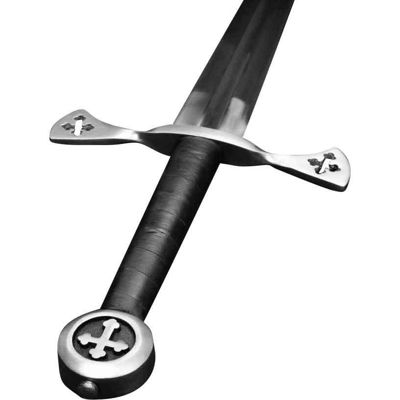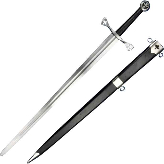 Display this medieval Templar sword with scabbard in your medieval weapons collection or in your castle decor. This longsword makes a stunning gift for the Templars, collectors, and medieval warfare fans in your life. Carry it as a part of your Renaissance fair costume and stand out with an authentic piece of medieval history at your side. Wherever your story takes you, this Knights Templar longsword is a worthy addition to your arsenal.