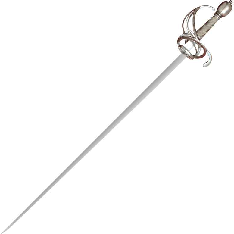 There are several of these swords in different private and public collections, one in the Wallace Collections and several at the Bavarian National Museum. It is a perfect example of German Military Cut-and-Thrust Swept Hilt and was carried by the Munich Town Guard. The slightly shorter blade and stout hilt were perfect for breaking up a street fight or tavern brawl, as the town guard was often employed to do, and was clearly intended for practical use. This is one of the most practical and prolific swords we have ever offered. It has a well-tempered 1095 high carbon steel blade. The pommel and guard are steel and the grip is wood wrapped in twisted steel wire for a very positive hold. Made by Windlass Steelcrafts, This sword includes a scabbard. The matched dagger is not included.