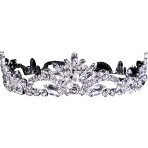 Princesses, queens, and ladies of all kinds can look like a noble by finishing off their look with the Noblesse Mini Crown. Plated in sterling silver, this mini crown has a circular band. It has interior rings for attaching the queens crown to the top of the head with hairpins, not included. The sides of the medieval crown angle gently outwards. Along the band, there are clear ellipse rhinestones with loops of rhinestones over the top. Between the loops, ellipse rhinestones form a fan shape. You can wear the Noblesse Mini Crown for many events, from medieval festivals to formal occasions. It works with a variety of outfits.