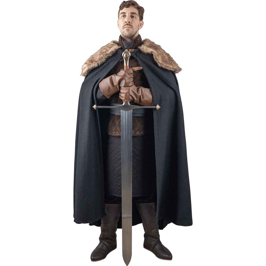 Be prepared to enter the world of swords, castles, and kings wearing this men’s medieval costume. Every piece included in this medieval fantasy outfit bundle is designed to exude nobility and the warrior culture of the north. Starting with the base layer, you can begin your medieval fantasy lord look with the Gadaric tunic, Kasimir trousers, and Nils Medieval Gambeson. The tunic and the trousers come in different sizes and colors, ensuring lords from every northern house can find the right colors and the right fit. Top it all off with the Arthur Suede Gambeson, a sophisticated suede piece worthy of a true lord while giving you a layer of padded protection. Wear the Janne Viking Cloak around your shoulders for a hint of wild, untamed style. Even better, the cloak has faux fur trim resembling a wolf pelt!
