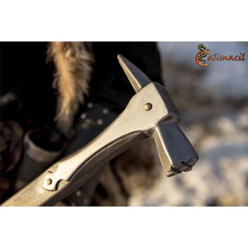 This little warhammer is awesome. It handles nicely and looks great. Just note that the piercing end is not rigid at all, and you won’t be able to hook onto anyone or pull any shields with it.