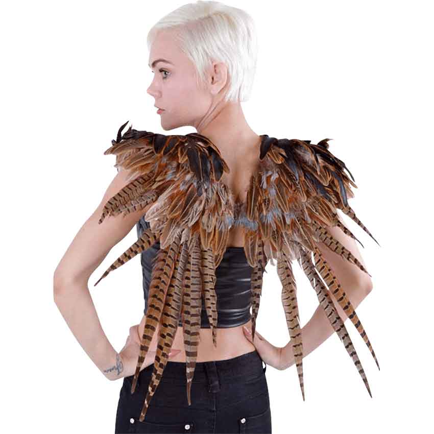 When you wish to add an avian touch to your costume or dress-up ensemble, you should make sure to check out the Pheasant Fairy Wings. This fantasy pair of wings secures onto the shoulders with adjustable elastic straps. Natural pheasant feathers cover a wire frame. The frame allows for posing the flexible wings. There are many short feathers at the top to create a full look. Further down, there are fewer long feathers pointing outwards. The Pheasant Fairy Wings are ideal for nature fairies and other magical creatures.
