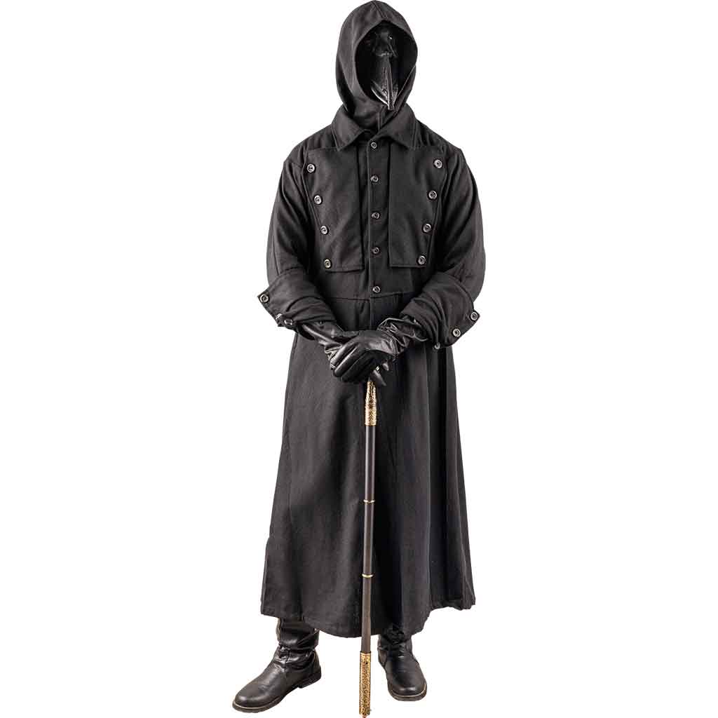 This plague doctor costume feels right at home for those who love gothic outfits and indulging their darker side. This men’s plague doctor fantasy outfit includes an iconic plague doctor mask, a greatcoat, and a hood. The Leather Plague Doctor Mask is the focal point of the bundle. This mask, available in two colors, gives your look that iconic beaked aesthetic plague doctors are known for. The Kandor Greatcoat, with its full-length drape and stylish fittings, strikes a sophisticated presence as a part of your ensemble. Top it all off wearing the Bron Canvas Hood so you can achieve an intriguing and mysterious look. What’s more, the coat and the hood can be personalized with a variety of different sizes and colors to unleash your creativity.