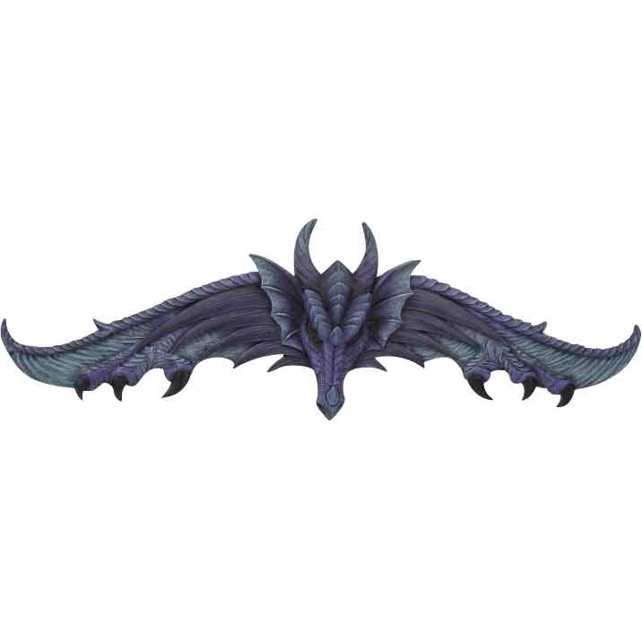 If you wish to add a touch of dark fantasy to your entryway, take a look at the Purple Dragon Door Topper and consider hanging it above your door. Made from cold cast resin, this hand-painted dragon looks down at whomever travels underneath. The plaque has a rich purple and blue coloring. The intricately detailed dragon has its claws on each side and has a horned head. The topper is a wonderful home decor piece. It also makes a great gift or collectible.