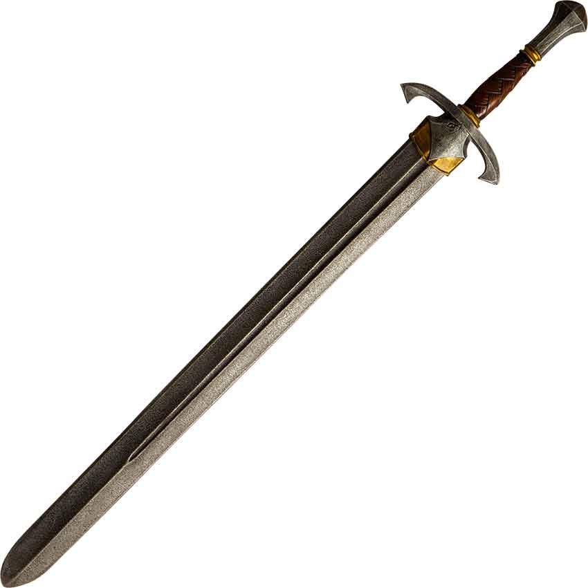 Drawing inspiration from the arming swords that carved out empires in the Late Middle Ages, the Vanguard is not just a weapon, it is a statement. Its design, featuring a dynamically curved silver-colored crossguard with a striking golden section on the blade, captures the essence of historical warfare and artistry. The handle, with its faux-leather appearance, offers a comfortable and secure grip, ensuring the sword feels like an extension of your arm as you navigate through the trials and victories of your LARP adventures.