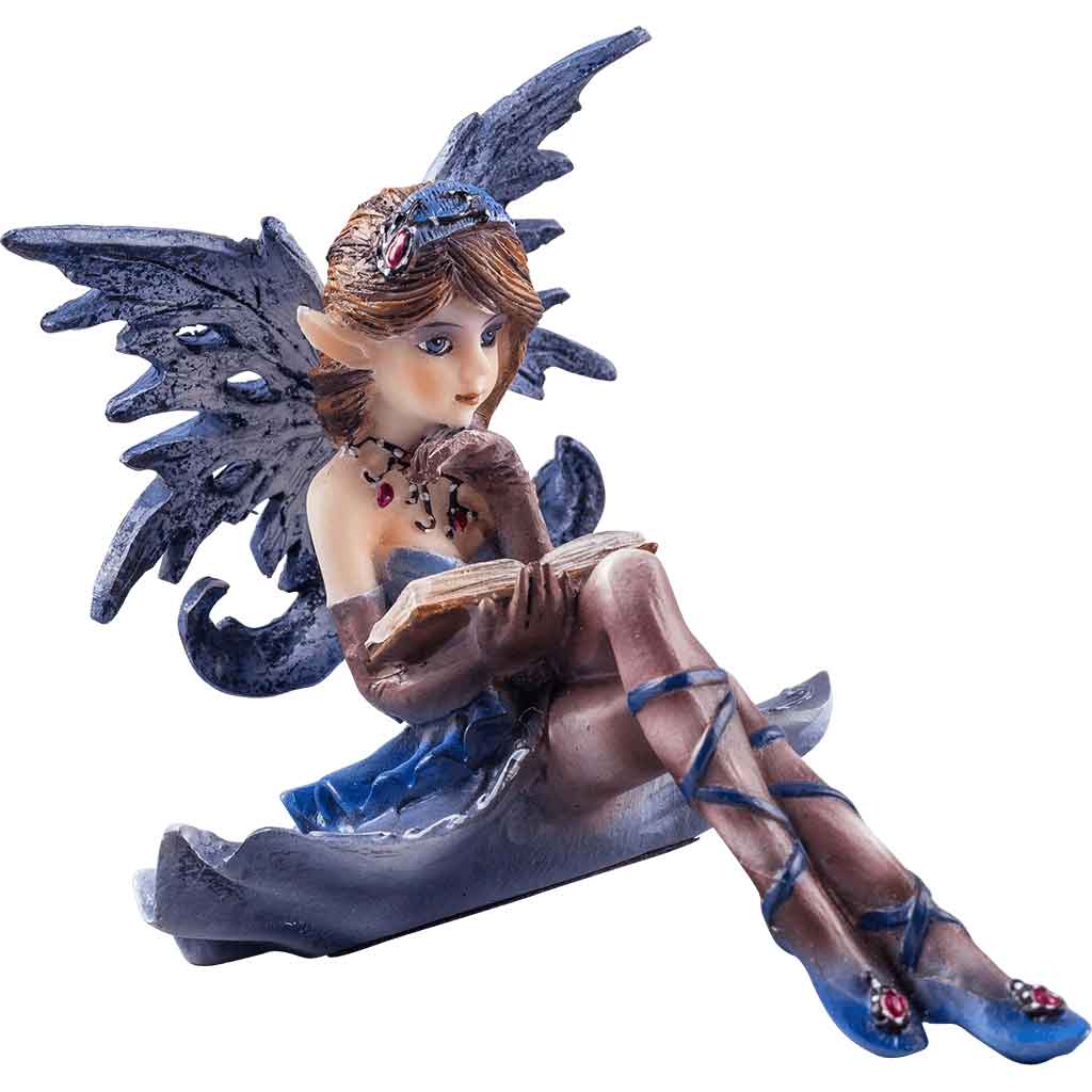 It should come as no surprise that fairies like to sit and watch. Curious by nature, fairies enjoy watching anything new or interesting, and that is exactly what this Reading Fairy Sitter Statue does with silent interest. This pretty little fairy figurine features a flat base that looks like the bottom of the fairys purple and blue dress, billowed out and made solid. The fairy sits with a blue hand holding her vibrant red hair out of her face, while her head is turned down to focus on the book that sits in her lap, although her head is tilted up as though keeping watch on her surroundings, too. The fantasy statue is hand-painted to ensure the utmost detail and brightest coloration possible. It measures approximately 3.5 inches tall, 4 inches long, and 3 inches wide. This Reading Fairy Sitter Statue is a pretty little decoration that takes up virtually no space, making it a great piece to sit on a shelf, where it can sit and survey the room to its hearts content, all year round.