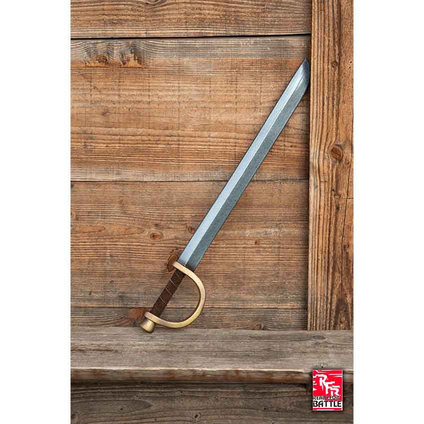 Our Pirate LARP Sword is from our Ready for Battle line. The Ready for Battle line is a less expensive line that is still durable and made of quality foam, but is not as detailed as our other lines making them very affordable and great for beginners or those on a small budget. This sword features a cutlass styled blade and a cupped hand guard.
