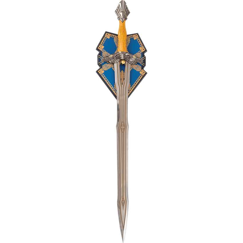 Intended for display, you can enjoy this iconic replica of the mountain king’s sword itself. Hang it on the walls of your favorite room thanks to the included display plaque. Add it to your cosplay to remind you of epic battles and the quest for the mountain. Thanks to its unsharpened design, this decorative sword is perfect for costume use. You can add it to your dwarven king costume or your sword collection. Showcase this weapon as a part of your ensemble at cosplay conventions or Renaissance fairs. Gift it to a special someone who loves all things dwarves. Show off your love of fantasy by ordering this dwarven fantasy sword today.