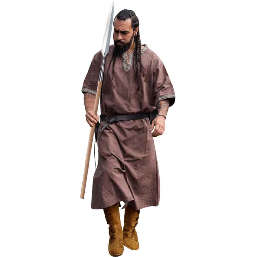 To begin with, this Norse mens outfit includes the Chestnut Richard Short Sleeve Viking Tunic as well as a pair of pants and a belt. The short-sleeve tunic comes in multiple sizes. Meanwhile, the pants and belt also have multiple color options.