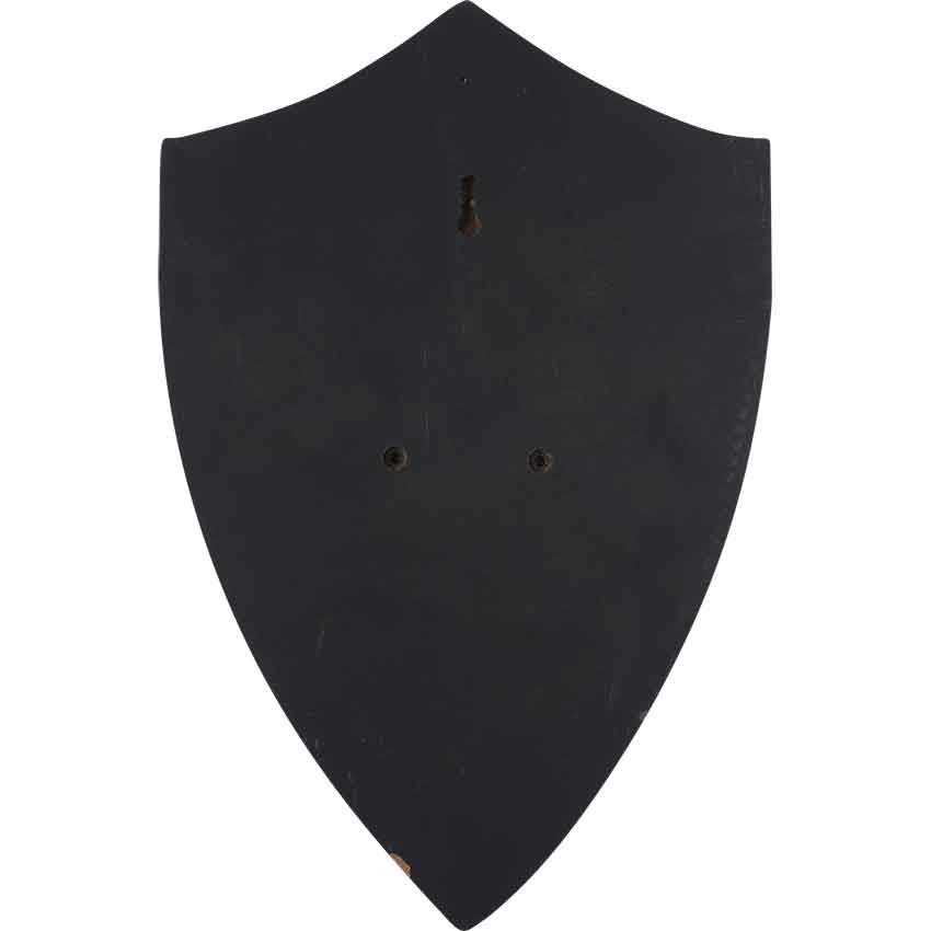 Inspired by the heroic outlaw of legend, the Robin Hood Sword with Plaque is a stainless steel medieval blade made ornate through shield details on its guard and pommel. Antique brass finishing lends rugged regality to the hilt. This decorative medieval sword showcases a triangular shield at the guard, between two arms that curve slightly upwards towards the blade. The name Robin Hood appears just above this colorful detail. Striped with different textures to help create a firm hold, the grip is treated with antique finishing for an authentic vintage look. Similar to a rounded hexagon in shape, the pommel is adorned with a unique emblem that displays a flower over a cross. Intricately detailed with attention to medieval style, this decorative Robin Hood sword comes with a matching wooden wall plaque for easy display. Add this legendary medieval blade to your collection of weapons, or display it with pride as a conversation piece in your home.