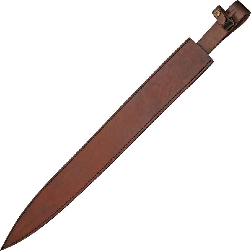Finally, this Roman fantasy sword comes with a leather scabbard. The brown scabbard secures the fantasy gladius with a snap strap. Also, it has a loop at the top for hanging from a ring belt or buckle belt. You can bring this sword to your next reenactment. It suits a variety of characters. When it is not in use, put it on a sword stand or keep it sharp with some maintenance supplies.