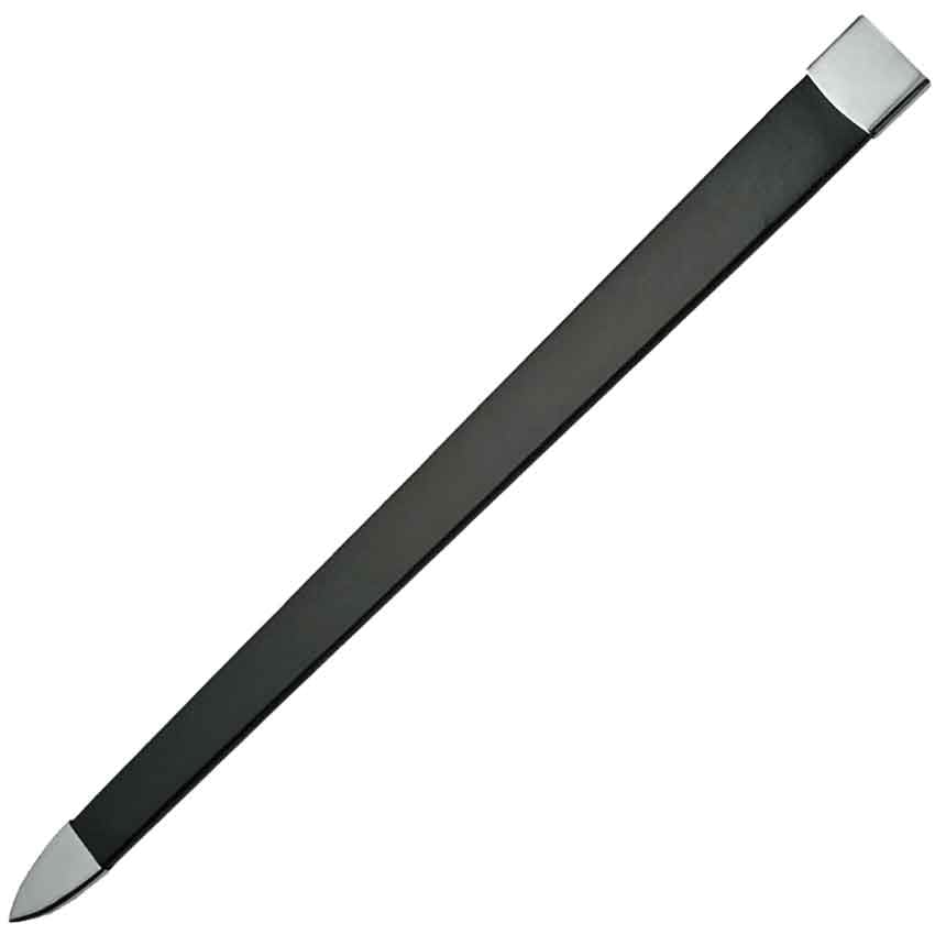 - Includes a black scabbard with silver finish trim