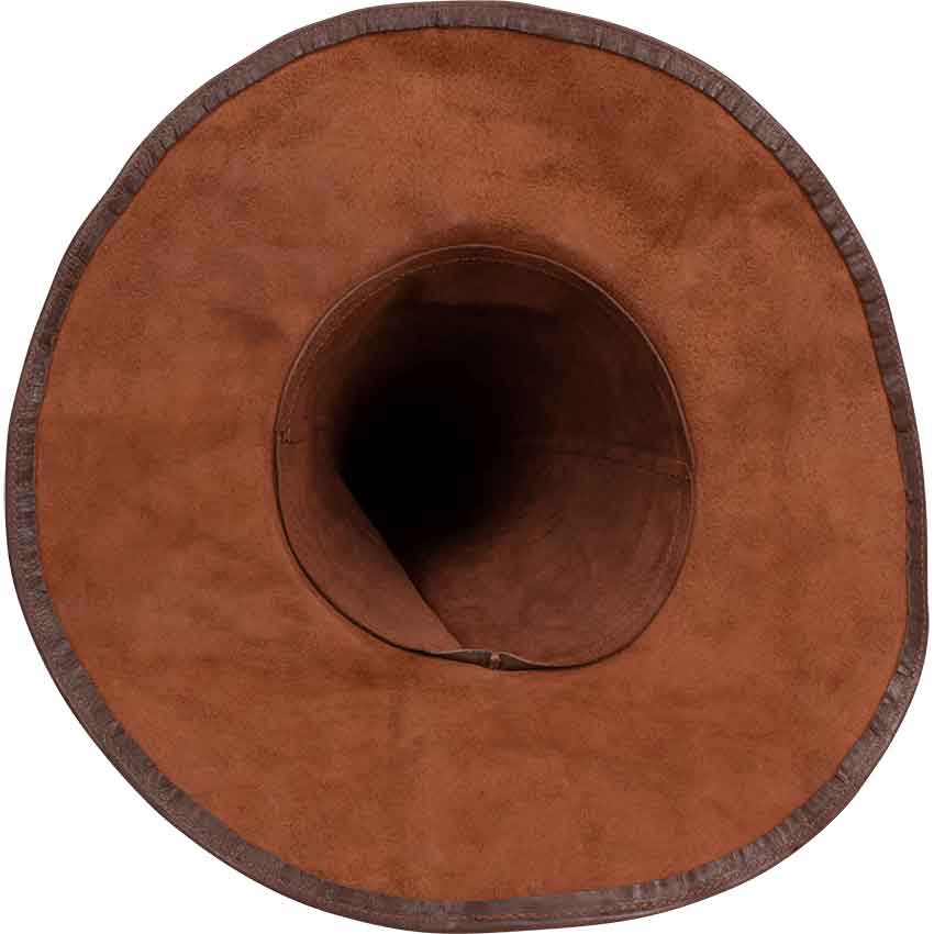 In addition, this leather witch hat features a wide brim, perfect for adding some drama to your magical look. There is an internal wire at the edge of the brim, helping it to keep its shape. Feel like a true witch or wizard with this leather magicians hat for your next Ren faire, LARP event, or cosplay.