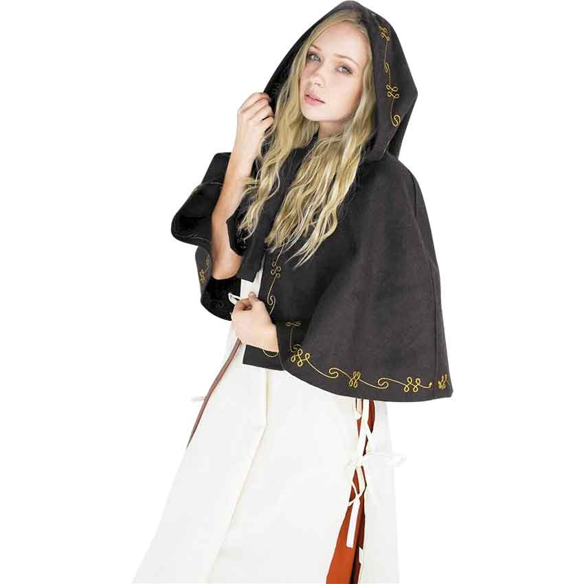 No matter if you want to cosplay as a fantasy adventurer or a medieval noble, finish off your outfit with the Brown Runa Embroidered Medieval Hood. This versatile hood is ready to become an essential in your cosplay, reenacting, or LARP wardrobe.