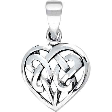 Bring a touch of Celtic style and romantic flair into your life and wardrobe by wearing the Silver Celtic Knot Heart Pendant. Made from sterling silver, this Celtic pendant features a bale at the top. It allows the polished pendant to slide on a chain, not included. Hanging from the bale is a heart shape. On the inside, it has a cutout knotwork pattern. You can add this silver heart pendant to any medieval jewelry collection or Renaissance outfit.
