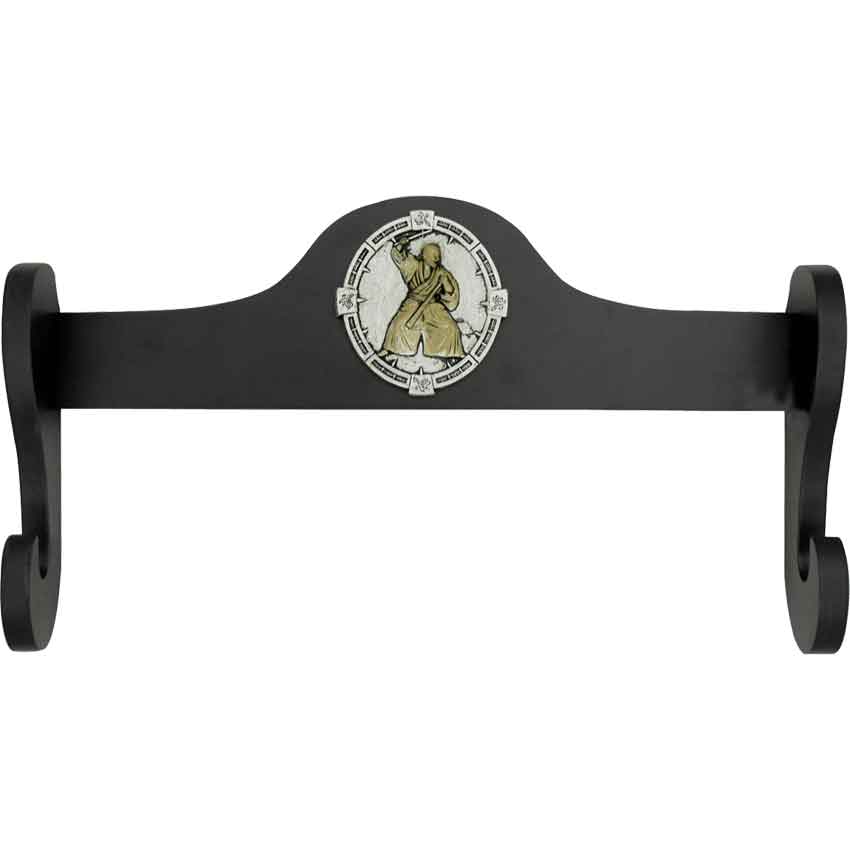 The centerpiece of a collection deserves to have a more unique look and display. This Single Samurai Sword Wall Rack stays true to its roots while also accenting any katana it holds, making it a superb way to highlight your favorite Japanese sword. This sword rack is designed to be mounted on the wall and features a single horizontal support that is emblazoned with a white medallion that features a yellow samurai emblem. The stand itself is made from hardwood and features a black lacquered finish that perfectly accents just about any sword you might place on the rack. It is designed to mount securely to a wall, and provide the perfect place to store away any sword of your choosing. Thanks to the cultural emblem, though, this Single Samurai Sword Wall Rack is the perfect way to bring a touch of Japanese style to your collection, as well as the perfect way to highlight the central katana, chokuto, or other Oriental sword in your collection of arms and weapons.