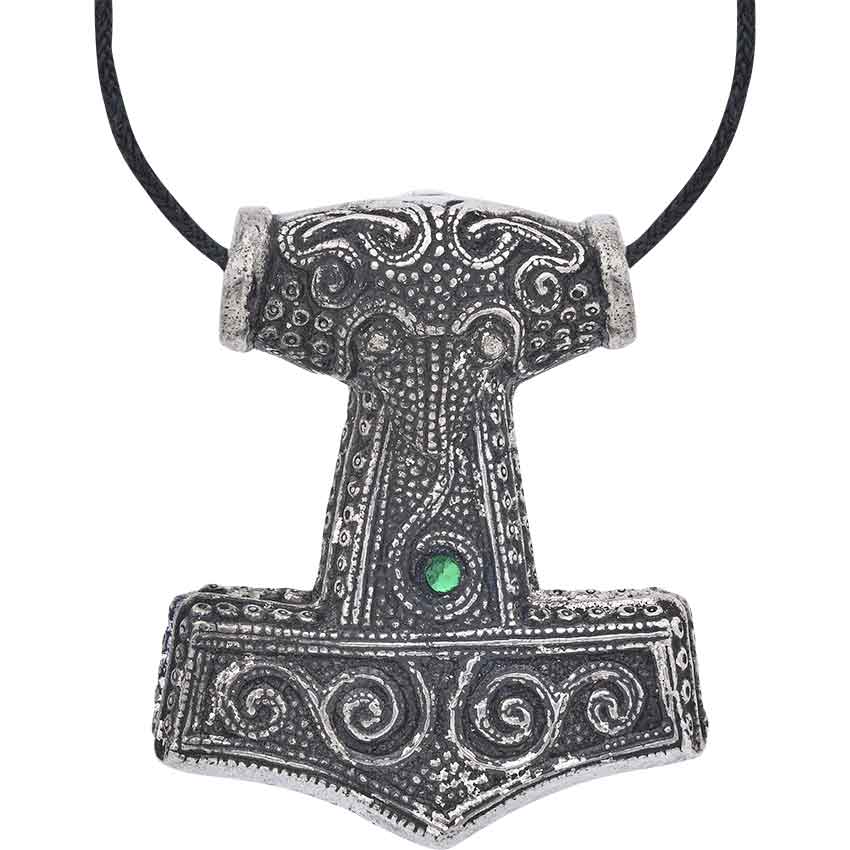 The Green Skane Thors Hammer Viking Necklace hangs from your neck as you gaze upon your companions. You await the day ahead. This Viking necklace is a replica of one found in Skane, Sweden. Made from solid pewter, this antiqued Norse necklace takes the shape of Mjolnir, the hammer of the god Thor. Thors hammer is a symbol of protection for the followers of Thor.