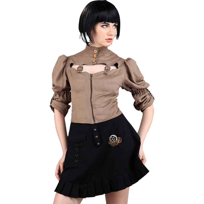 Not everything Steampunk is inspired by Victorian style and fashion. This Steampunk Short Skirt, for instance, is a more modern touch that nonetheless features a distinctive Steampunk style, thanks to its decorative little metal embellishments. This pretty little black skirt is made from black linen fabric and features a few little metal decorations to give it a bit more of Steampunk flair. The hem of the skirt is also subtly ruffled for an added dose of detail and style. Far from being the most complex Steampunk garment in the world, instead the Steampunk Short Skirt is one of the simpler. But that simplicity lends this shirt an effective edge, in that its simple style looks fantastic with a wide assortment of Steampunk looks.