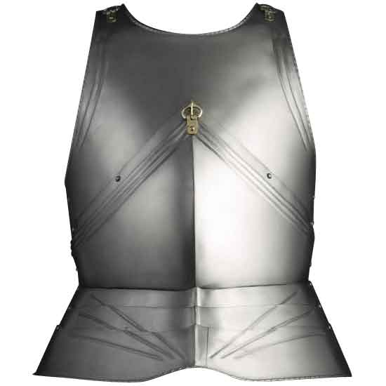 Any knight would be proud to wear the stylish and functional Steel European Breastplate. Featuring a historic design, this breastplate has decorative ridges and folds in its construction, adding elegance to this plate armour piece. Made of 18 gauge steel, the breastplate is finely handcrafted. This may result in slight variations in steel thickness. The brass buckles make it easy to combine this piece with a gorget, adding to its versatility as a medieval reenactment piece. No backplate is included with this piece.