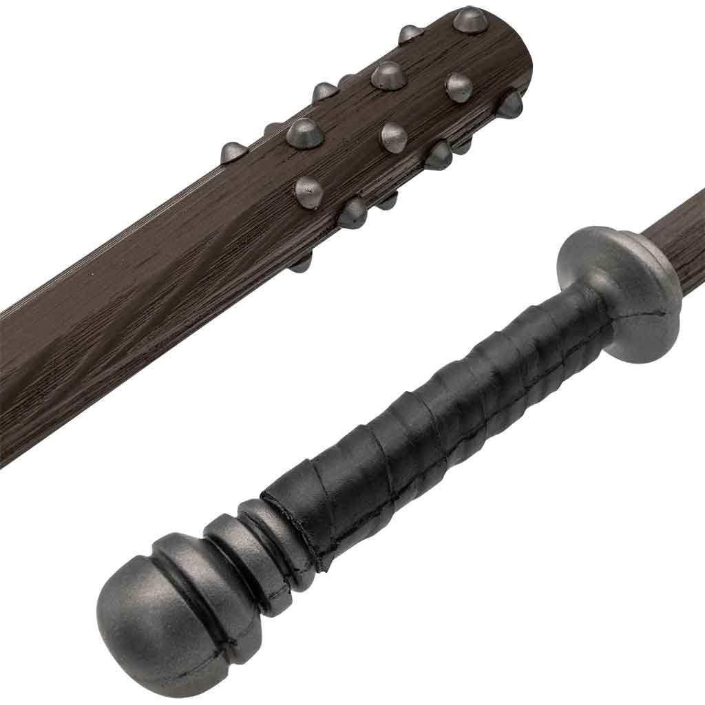 The Dentist Studded Club has a fiberglass core giving it strength and durability. This LARP club measures 32 inches long and has a blade length of 23 inches. This LARP club is not your standard, ultra-light latex-foam weapons, these are realistic reproductions created by injection mold processing and the materials themselves provide for a maintenance-free experience. The Dentist Studded Club performs well in standard gaming seasons of spring, summer, fall and winter. The Dentist Studded Club beautifully crafted and has spectacular realism compared to real metal maces and clubs.