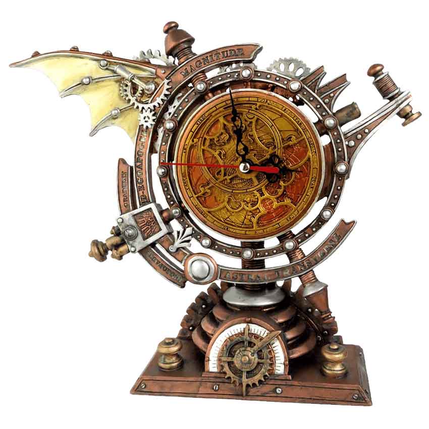 There are some mad geniuses that have sought to monitor and chart the forces that govern the passing of eternity. In The Stormgrave Chronometer, you have the fruits of their labor, manifested with true steampunk technology! This impressively detailed chronometer monitors the passage of time, while featuring a decidedly steampunk style. Gears and other gizmos adorn the clock design, creating a gadget that looks very capable of not only monitoring the passage of time, but also bending its rules! The clock is crafted from high quality resin and features iconic brass, bronze, and steel hues reminiscent of industrial steampunk ingenuity. The Stormgrave Chronometer is a fantastic desk or shelf accent, one that allows you to decorate like the very best of the steampunk socialites.