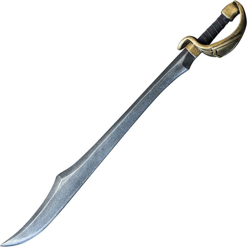 The weapon has a distinctive and unique look, including a faded gold-toned grip wrapped with suede. The hilt wrapping can be either black or brown. We will send what is available, unless otherwise specified. If you want to know what is available, please contact us before ordering.