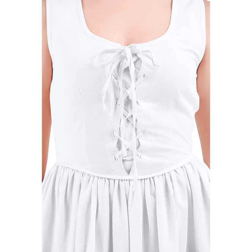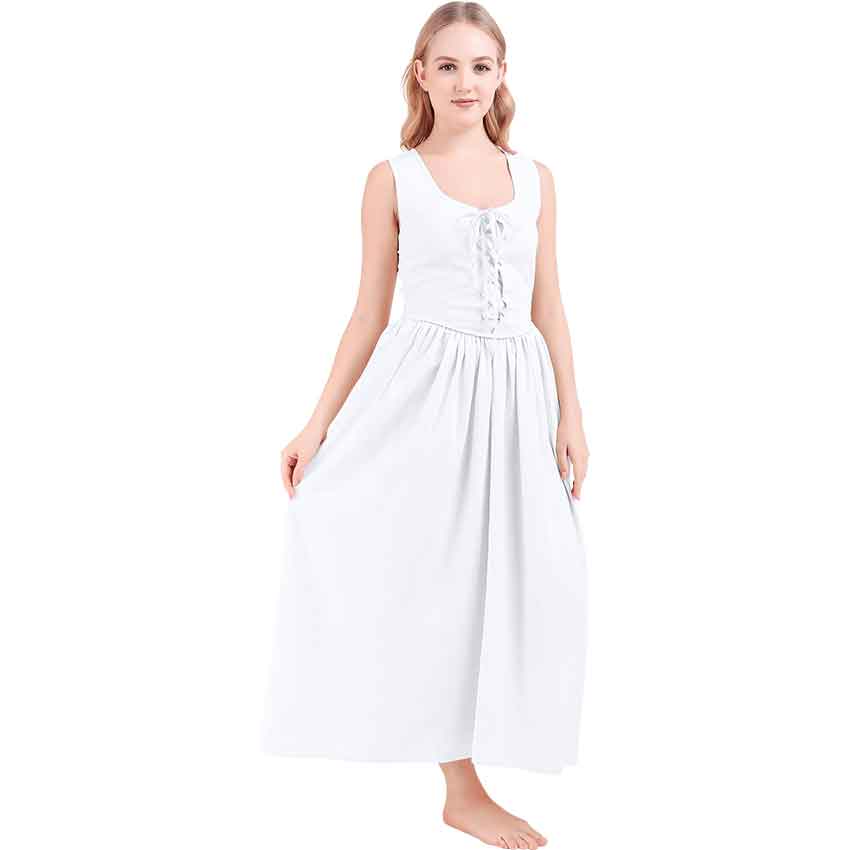 Crafted from a viscose blend, this cottagecore dress is a comfortable and stunning piece. Starting with the design, this historical dress is sleeveless to keep you cool during warmer conditions without sacrificing style.