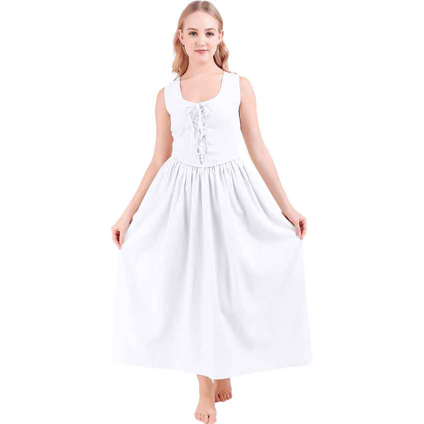 Unleash your creativity wearing this fantasy dress. Whether you are envisioning using it as the base layer for your next costume or simply adding a belt for a casual look, this medieval dress seamlessly adapts to your style. Imagine wearing this dress as you stroll through a bustling Renaissance fair.