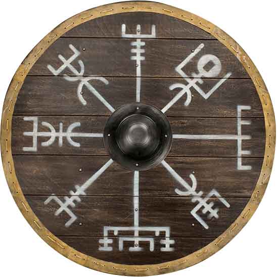 This runic compass Viking shield, much like the warriors who inspired it, is emblematic of the era’s battle-hardened ethos. Perfect for Viking personas, Norse inspired characters, and other costuming ideas, this round Vegvisir shield is as stylish as it is reliable. Your Viking persona can equip this Icelandic Viking shield to protect yourself in the heat of mock battles. When you’re not using it in epic shield wall battles, you can turn heads and spark conversations about Vikings and historical craftsmanship holding this shield at Renaissance fairs.
