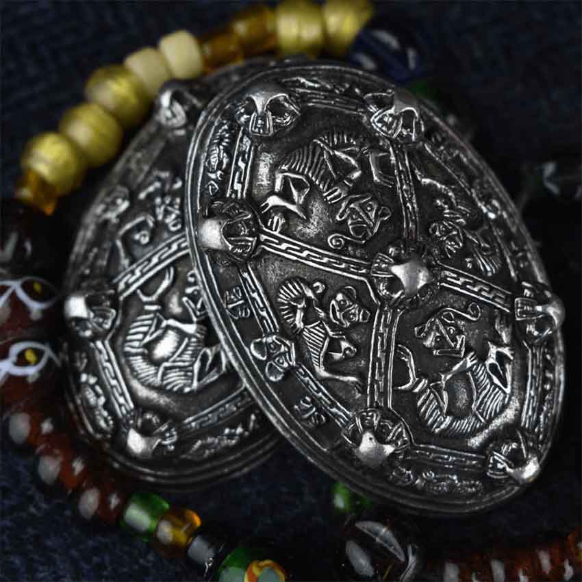 Are you searching for some authentic-looking accessories to include with your Viking outfit? Check out the Set of 2 Viking Age Tortoise Brooches. Made from lead-free pewter, this pair of Viking brooches has a hand-crafted design based on a Danish original using a similar construction method. Each oval brooch features a highly detailed look.