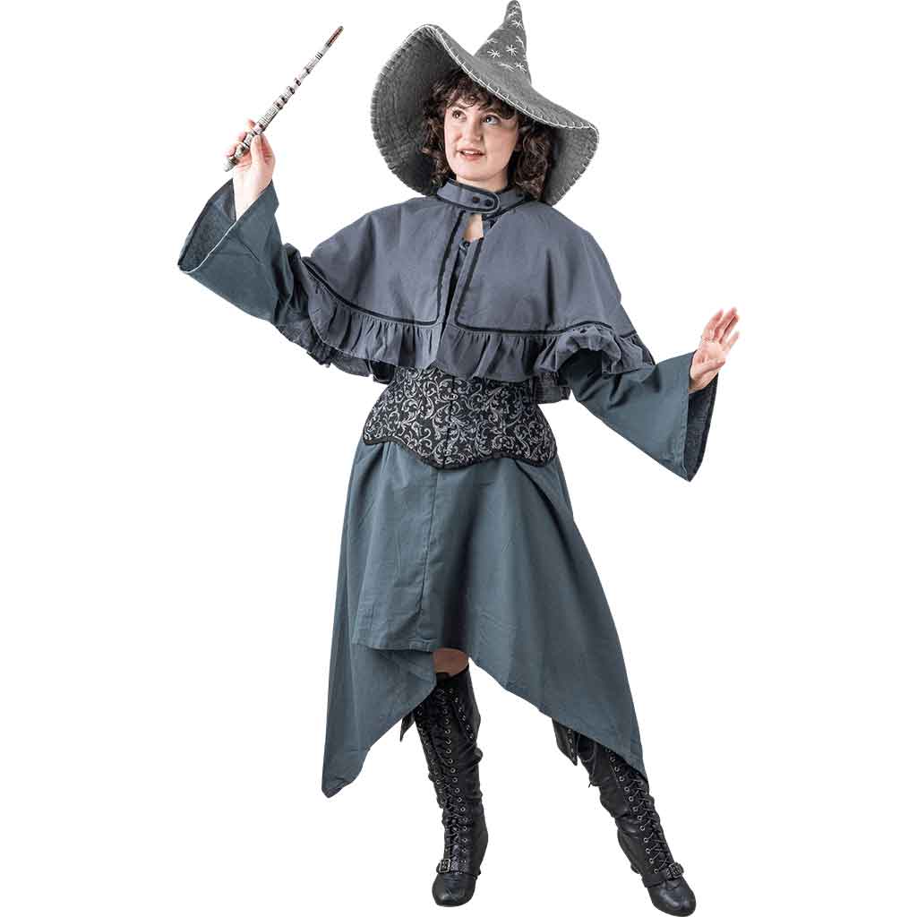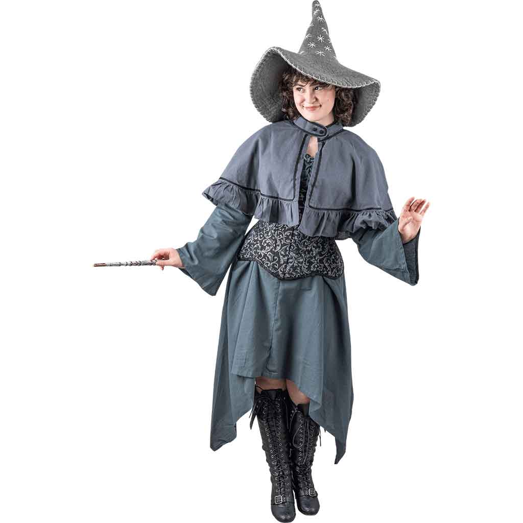 Weave hexes and enchant everyone around you wearing this witch outfit. This women’s gothic witch bundle includes the base layers necessary to bring your witchy look to life. The Ladies Hooded Elven Tunic is a great base layer with a roomy hood, adjustable lacing, and multiple options available. Wear the Amelia Victorian Cape around your shoulders for intriguing detail, also with a variety of sizes and colors to choose from. Adorn yourself with the Silver Brocade Waist Trainer Corset for a hint of gothic, witch-like charm. Top it all off with the iconic Star Wool Witch Hat as you enter a new realm of whimsy!