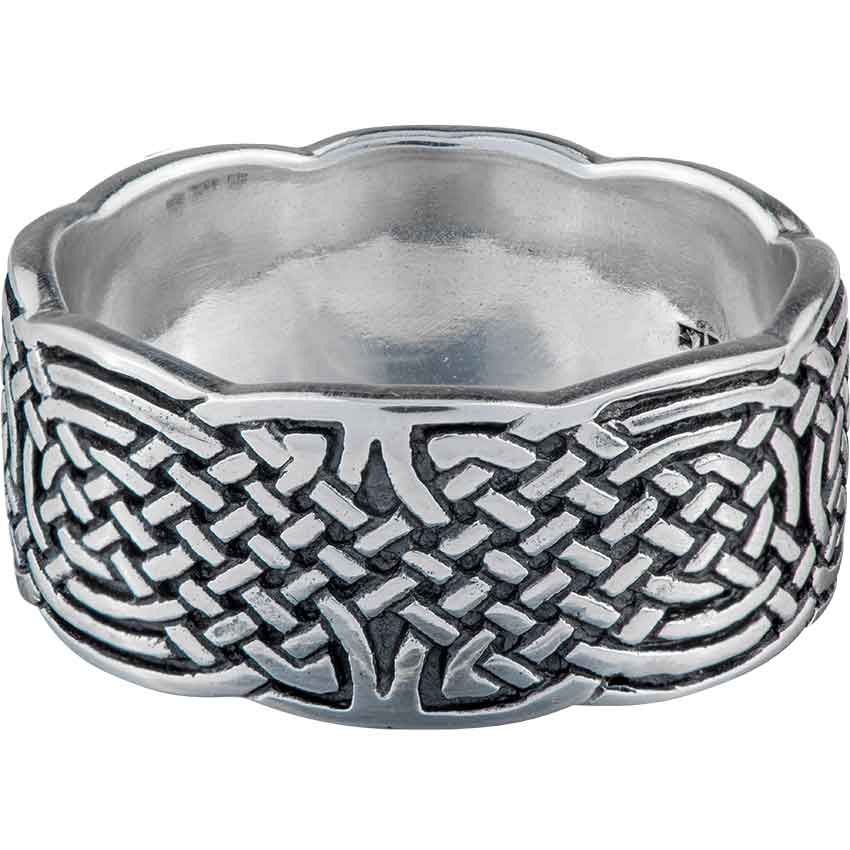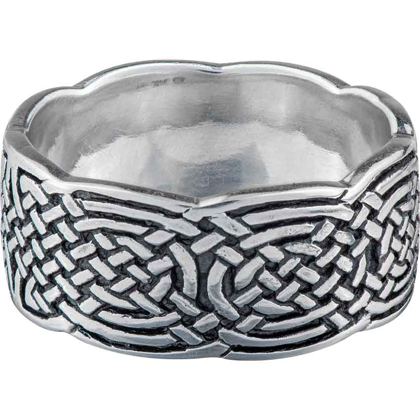 Passed down through the centuries, Celtic knotwork displays complex patterns that invoke the powerful concept of eternity. The White Bronze Eternal Knot Band showcases an intricate woven knotwork appearance. The pattern stands out well against its darkened background. This Celtic band works great as a personal accessory or gift for someone special. Made from white bronze, the knotwork ring is plated with sterling silver that gives it a bright gleam. Perfect for men or women to wear.