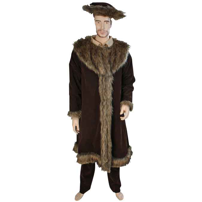 For a rugged winter look befitting a medieval huntsman or traveler, wear the Woodsman Fur Trimmed Coat. This medieval coat replicates the authentic look of historic winter outerwear with faux fur and high quality synthetic suede. Handmade with skill, this medieval coat gives off a rustic yet regal vibe, making it well-suited for a variety of historic styles. The body of the long medieval winter coat is made from high quality suede texture fabric that is both softer and lighter than real suede, making it comfortable and soft to wear while retaining the look and feel of its inspiration. The faux fur trim forms a large mantle around the shoulders and chest of the coat and decorates the front opening, sleeve cuffs, and hem as well. Wear it with our Woodsman Fur Trimmed Hat (MCI-398), not included, to get the comprehensive medieval winter look shown here. Available in a wide variety of suede colors, the Woodsman Fur Trimmed coat makes a fine outerlayer to wear over any medieval outfit at your next historic reenactment, Renaissance festival, or medieval LARP event.