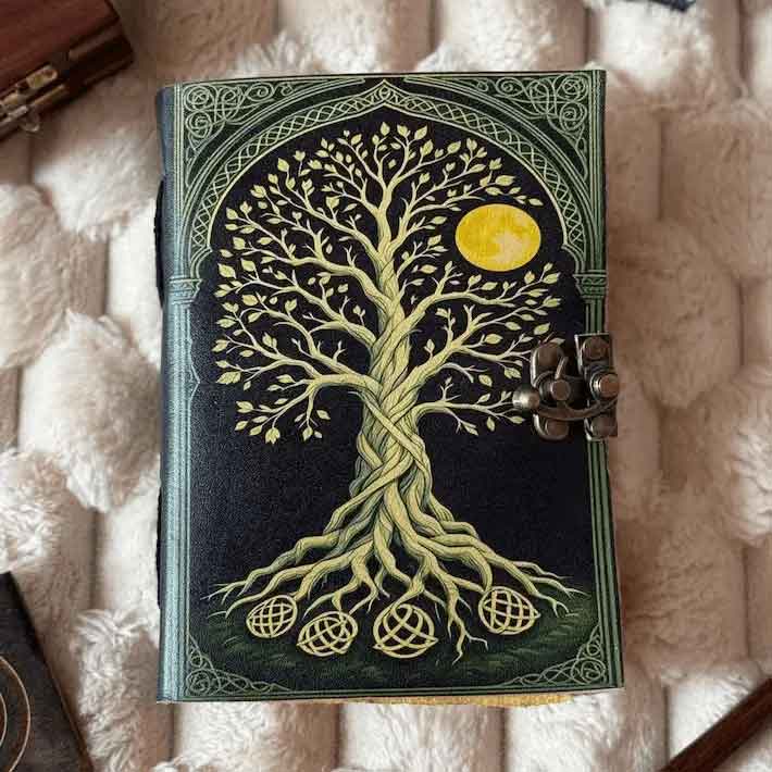 If you’re embarking on a new adventure, this medieval fantasy journal can become a great accessory for your costume, cosplay, or character. Dress up for Renaissance fairs, LARP events, cosplay conventions, and costume parties with this elven journal adding detail to your ensemble. The tree of life, the majestic harvest moon, and the knotwork in the design make this journal a great gift for special occasions.